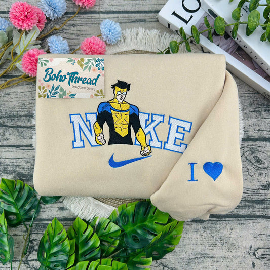 Personalized Superhero Embroidered Sweatshirt, Hoodie, T-Shirt – Invincible, Atom Eve & Omni-Man Design Gift