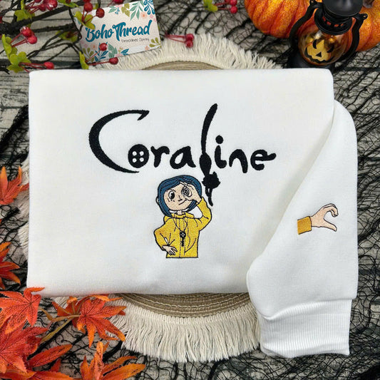 Personalized Embroidered Sweatshirt, Hoodie, T-Shirt – Coraline & Wybie Matching Design Gift