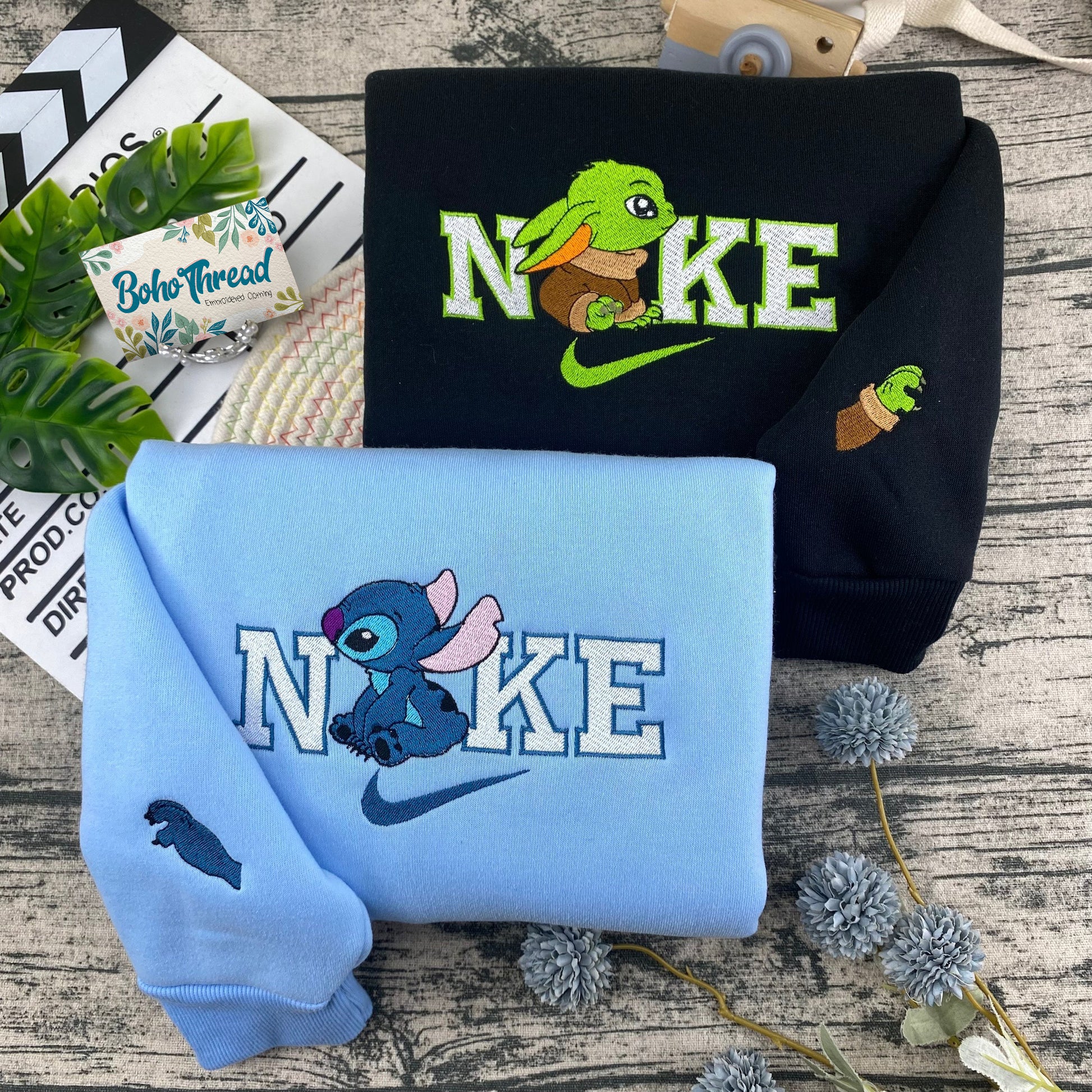 Grogu (Baby Yoda) & Stitch Embroidered Couple Sweatshirts, Hoodies & T-shirts