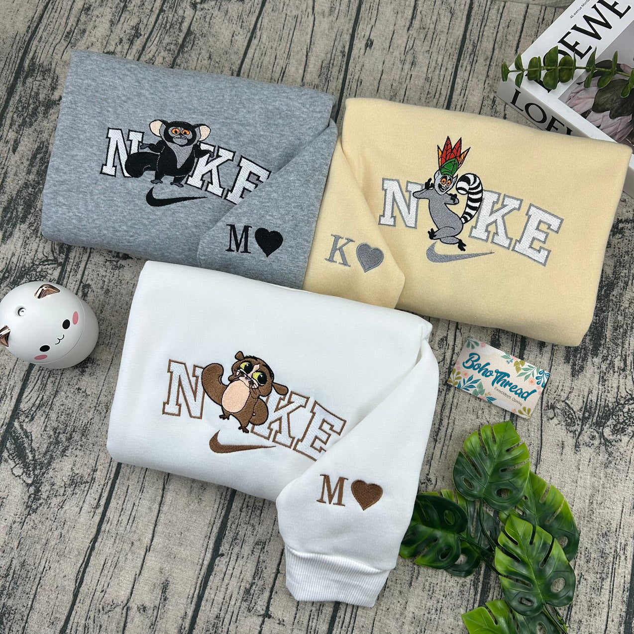 Madagascar Lemurs King Julien & Maurice Embroidered Couple Sweatshirts, Hoodies & T-shirts